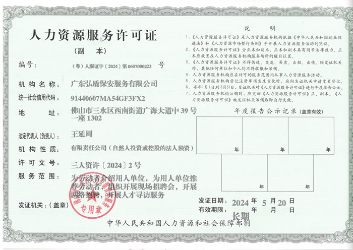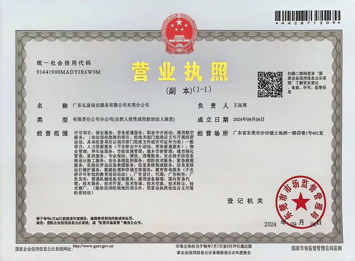 廣東弘盾保安服務有限公司東莞分公司是經東莞市公安局嚴格審核,廣東省公安廳批準頒發《保安服務許可證》,在東莞市工商行政管理機關登記注冊的,依法開展門衛、巡邏守護、秩序維護、隨身護衛,安全檢查等綜合安保服務的專業保安服務公司... [詳細介紹]